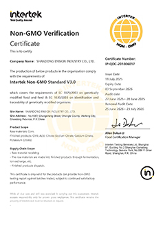 This certification focuses on the impact of genetically modified (GM) components in the production and processing chain on the non-GMO safety of the product. It establishes a whole-process quality control system from the production base, production process, handling, processing, storage, transportation to sales, to ensure the non-GMO identity of the product, ensure the produced products are non-GMO products, with an assurance system being established.