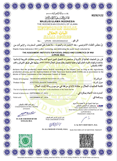 MUI, the Indonesian Ulama Committee, is Indonesia's highest religious authority body and one of the world's most authoritative HALAL certification official bodies. The HALAL certificate issued by it is universally recognized in countries worldwide.